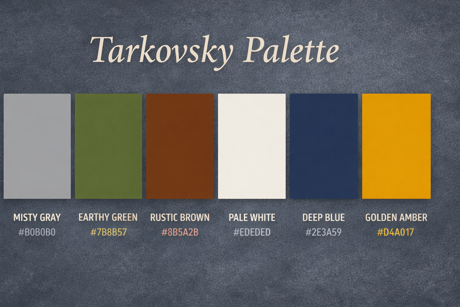 Η χρωματική παλέτα στον κινηματογράφο του Αγγελόπουλου διαμορφώνεται σε άμεση σχέση τόσο με τις τεχνικές δυνατότητες της εποχής όσο και με τα επιλεγμένα φυσικά και αστικά τοπία. Οι αποχρώσεις του γκρι, του καφέ, του μπλε και των ξεθωριασμένων γαιωδών τόνων αντανακλούν όχι μόνο τους περιορισμούς του φιλμ και του φυσικού φωτισμού, αλλά και μια συνειδητή αισθητική επιλογή απομάκρυνσης από τον κορεσμό και τη θεαματικότητα. Το τοπίο — σύνορα, λιμάνια, επαρχιακές πόλεις, εγκαταλελειμμένοι χώροι — λειτουργεί ως φορέας ιστορικής μνήμης, με το χρώμα να ενισχύει την αίσθηση της χρονικής ακινησίας.